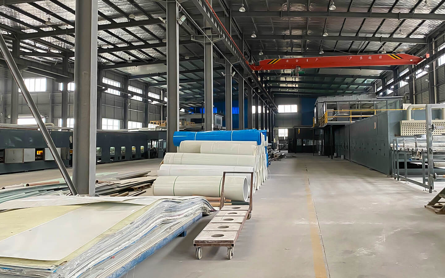 泰州中盛機電有限公司在引進消化美國FRP自動化板材生產(chǎn)線的基礎(chǔ)上,生產(chǎn)具有高鋼性、高韌性、強耐腐性、耐候性的FRP板材。